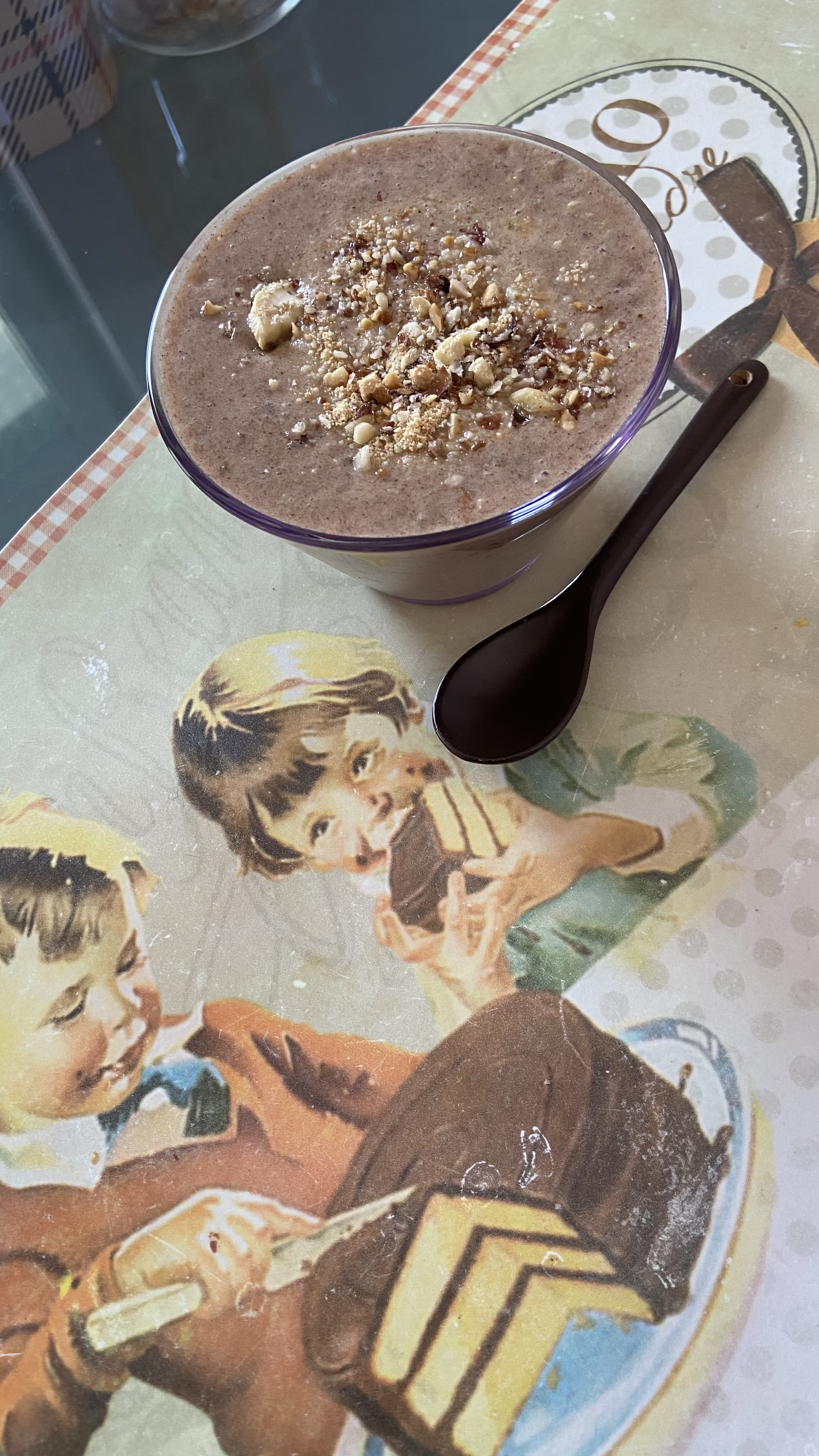 Sve sastojke izblendajte ili ručno izmiješajte ako nemate blender. Prvo zgnječite banane, dodajte mlijeko, začine,med,vodu.